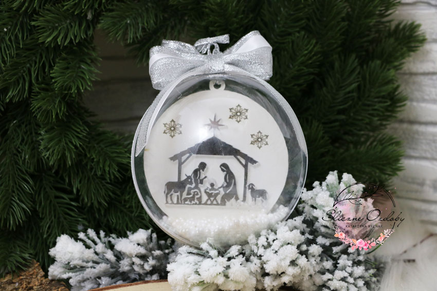 Dekoracja wykonana jest w formie akrylowej kuli o średnicy 12 cm, sztuczny śnieg dodający uroku i świątecznej magii wewnątrz której znajduje się starannie wykonana scenka ze Świętą Rodziną. Kula doskonale sprawdzi się zarówno jako ozdoba świąteczna, jak i gotowy prezent dla bliskich – babci, dziadka, nauczyciela, szefa czy osoby duchownej.